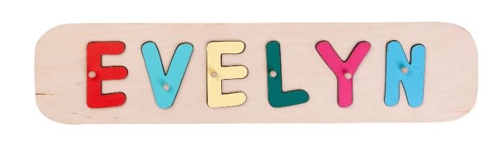 Name puzzles - A fun personalized puzzle with your child's name will help them learn letters and improve motor skills. Made with safe non toxic materials.