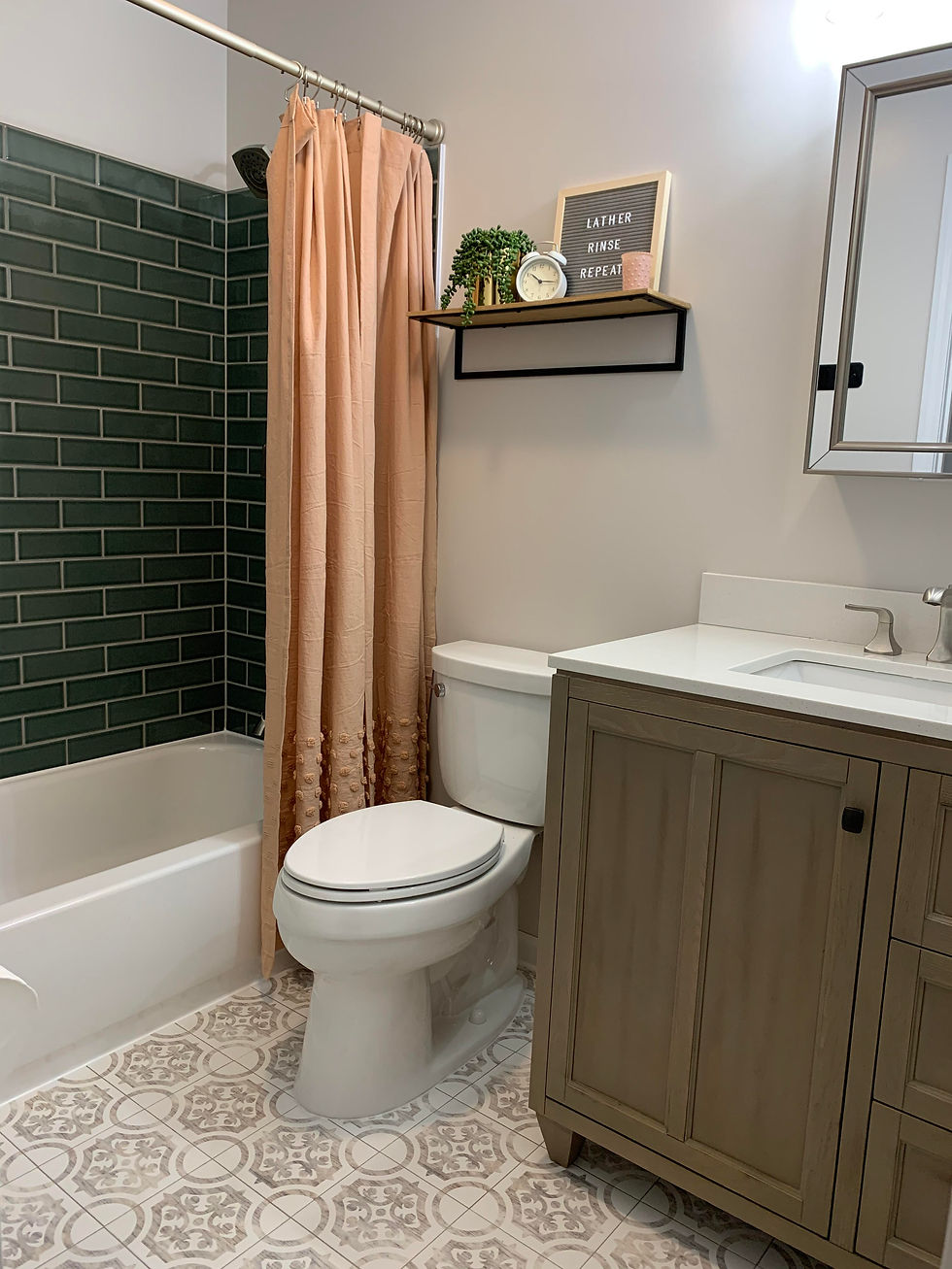 I recently shared with you that we were having one of our bathrooms remodeled. My background is in Interior Design so of course I was super excited to be able to have this project completed.